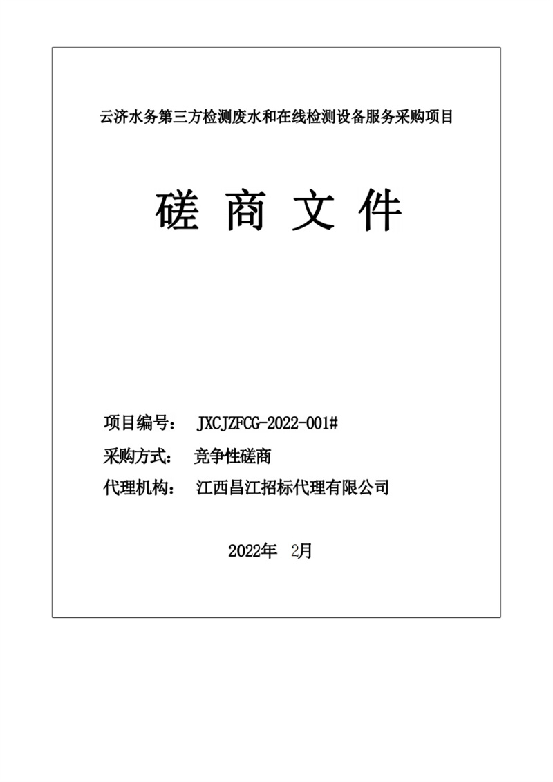江西昌江招標代理有限公司關(guān)于云濟水務(wù)第三方檢測廢水和在線(xiàn)檢測設備服務(wù)(項目編號:JXCJZFCG-2022-001#)競爭性磋商采購公告