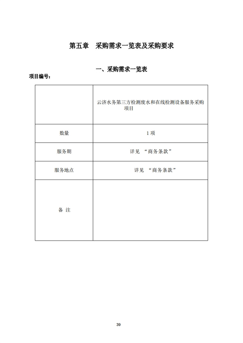 云濟水務(wù)第三方檢測廢水和在線(xiàn)檢測設備服務(wù)采購項目磋商文件